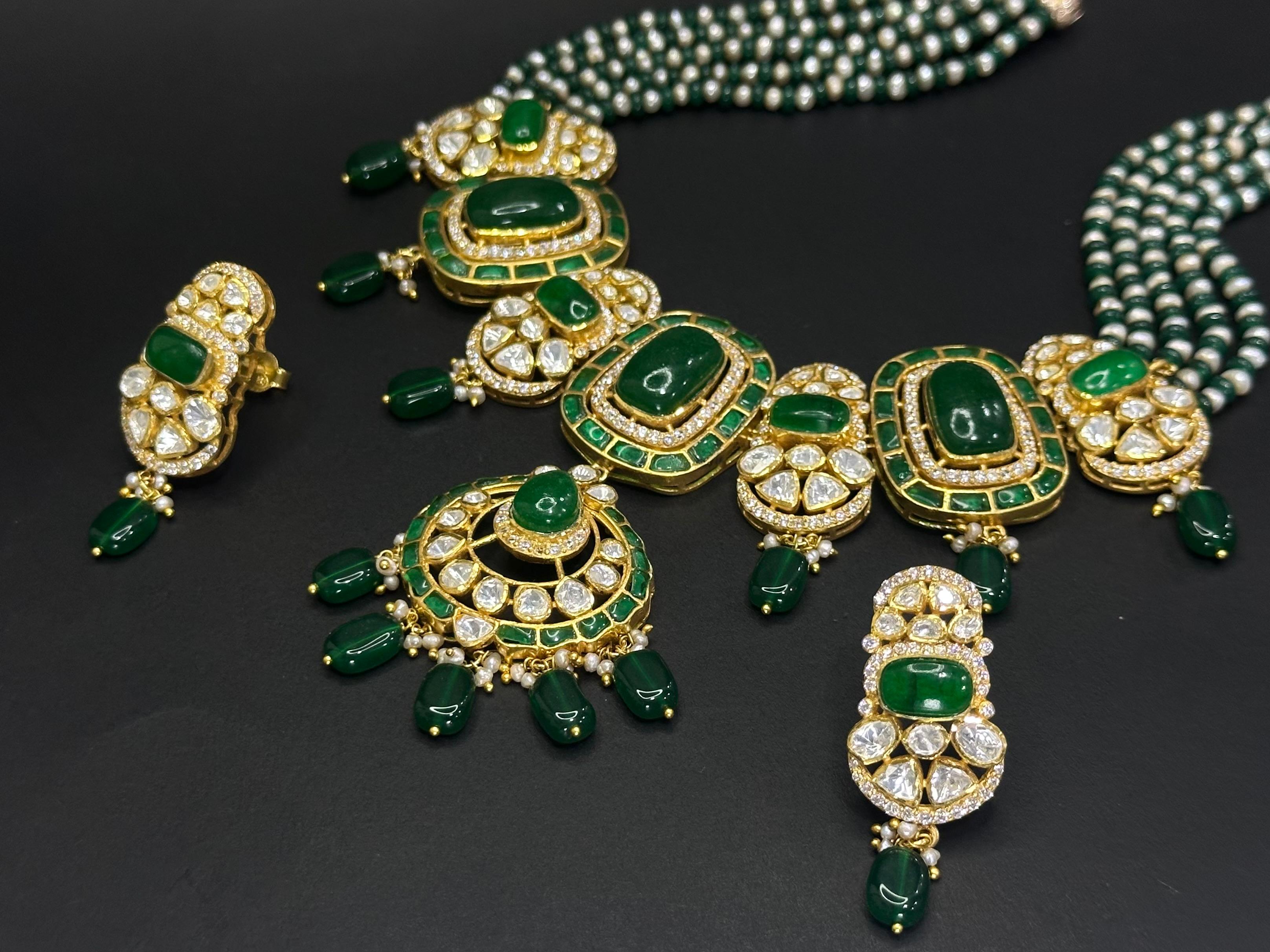 This elegant 925 silver green stone necklace set blends traditional craftsmanship, vibrant gemstone accents, and timeless design, making it a graceful statement piece for special occasions. ✨