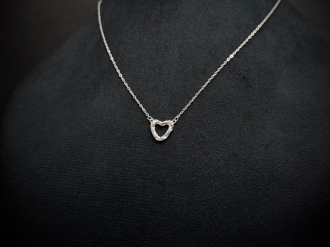 Crafted in pure 925 silver and finished with a refined white gold polish, this pendant features a delicately dented hollow heart design — symbolising love that’s real, imperfect, and beautifully human. The textured surface adds a subtle handcrafted charm, making it stand out while remaining effortlessly wearable.