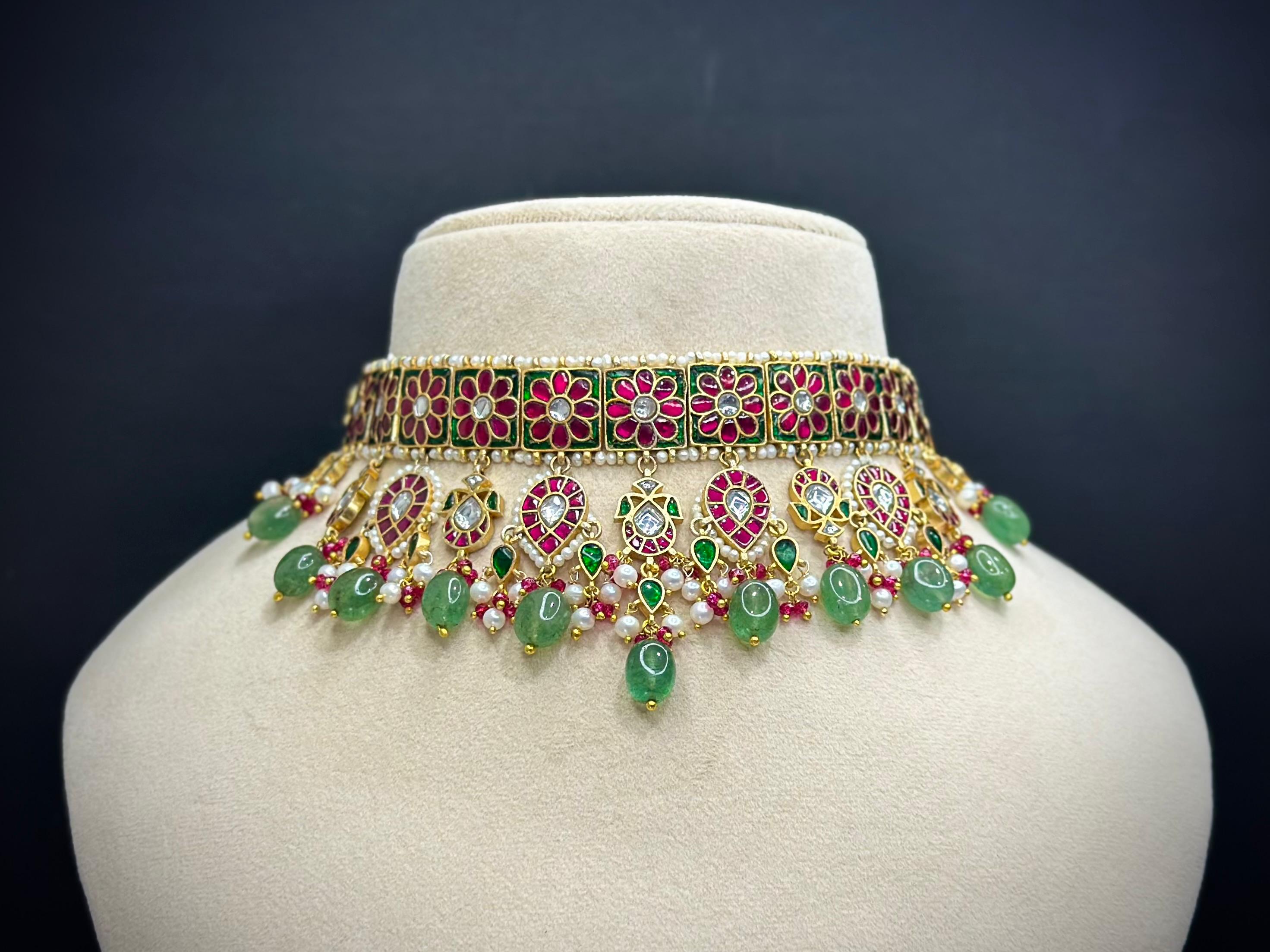 This colorful set comes with matching floral earrings, completing the regal yet playful look. Each piece is handmade by skilled artisans and ethically crafted with recycled silver — bringing together sustainability, tradition, and luxury.