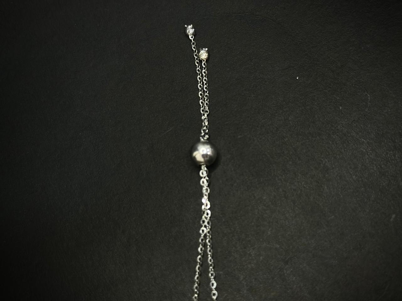 On either side, textured silver spherical beads add balance and visual rhythm, leading into a fine adjustable chain with a sliding closure for a comfortable, customizable fit.