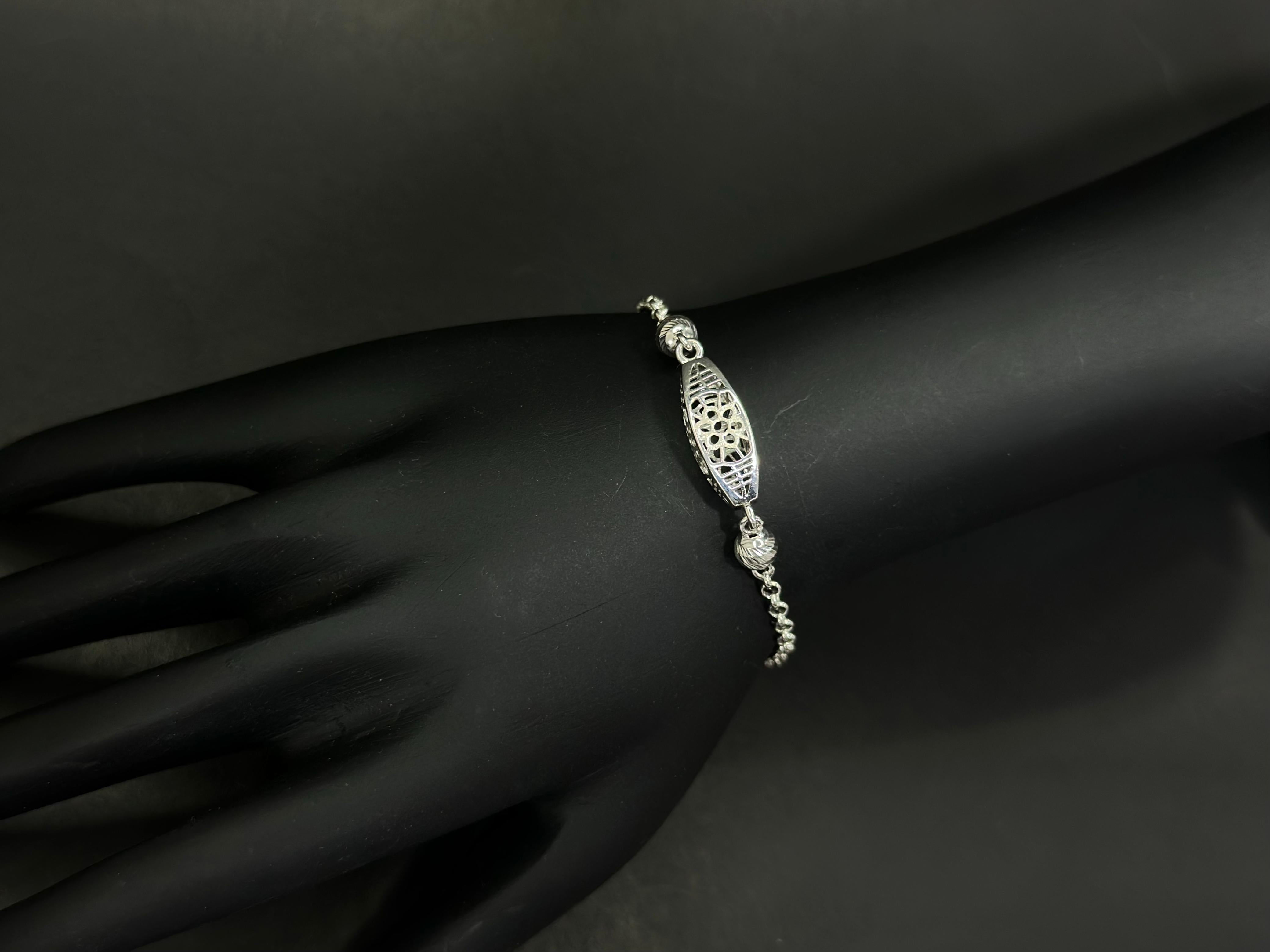 Elegant craftsmanship and timeless artistry come together in the Ornate Bloom Bracelet, crafted from 925 sterling silver and finished with a premium 6nm white gold plating that gives the piece a radiant and polished finish.