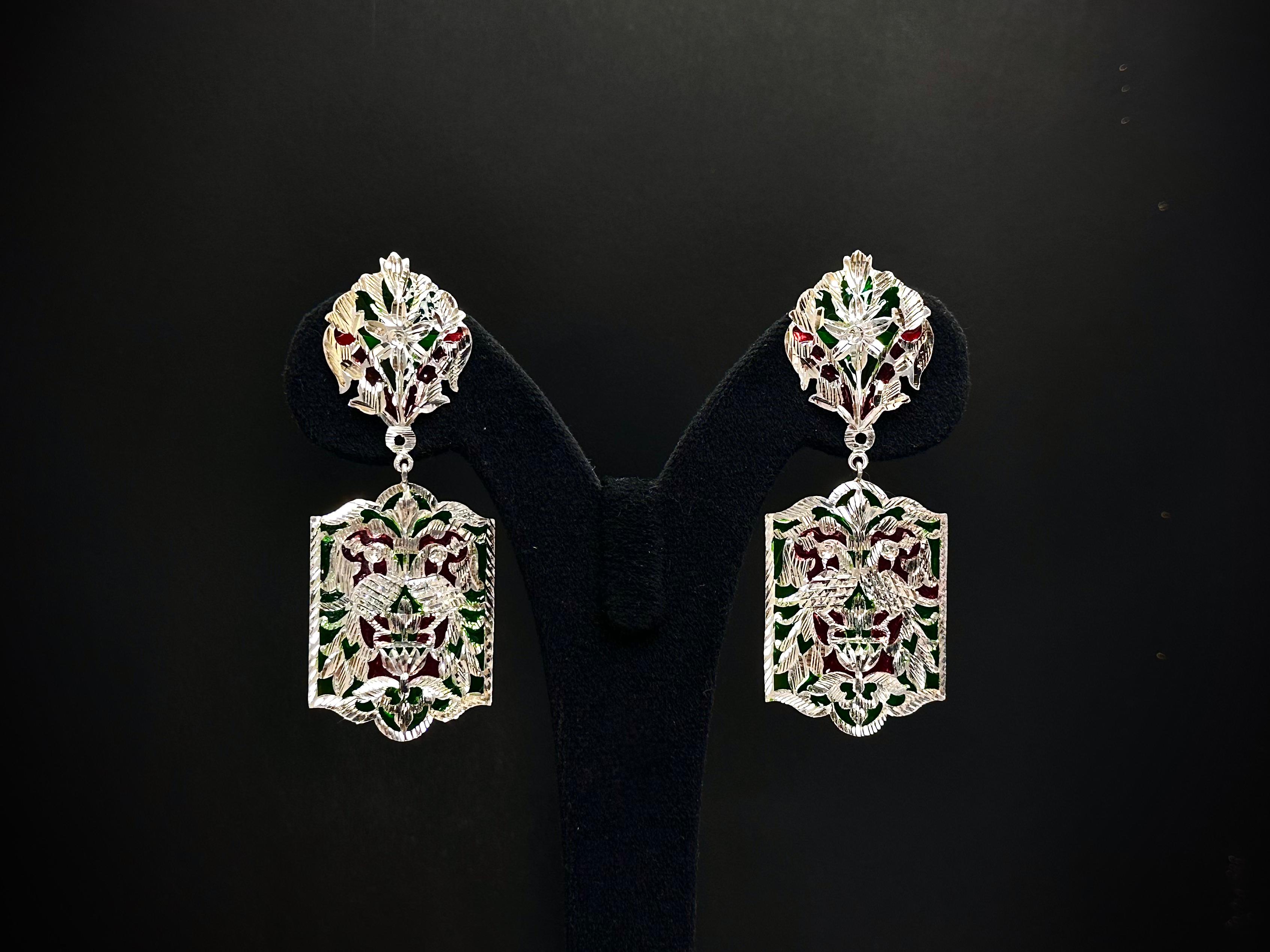 ✨ The Rajvanshi Jaali 925 Silver Enamel Earrings are a striking expression of heritage craftsmanship, blending intricate cutwork, delicate surface engraving, and vibrant dual-tone enamel artistry into a refined traditional statement design.